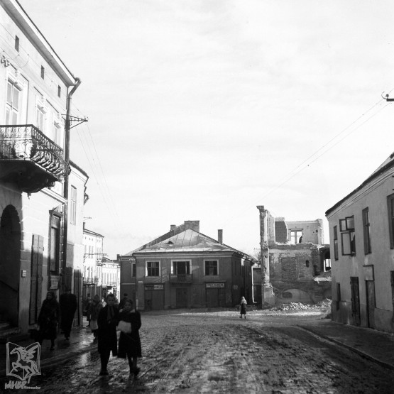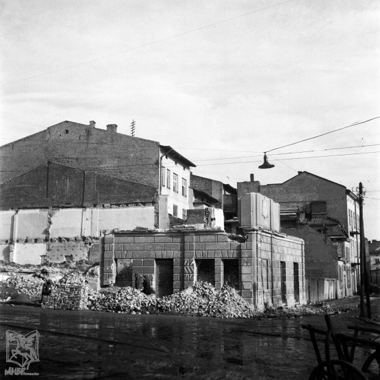 Houses on Mickiewicza Street during demolition (in the center). The exit from the “Bunker” was located beneath.