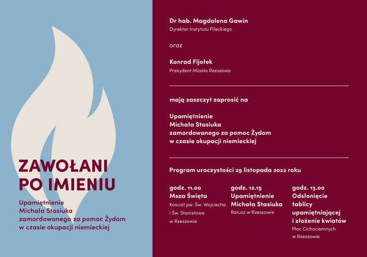 On November 29, 2022, together with the residents and authorities of Rzeszów, we will commemorate Michał Stasiuk, who was murdered for helping Jews during the German occupation.