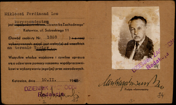 My contacts with Miklósi were not limited to receiving important information and writing articles for him. In fact, I turned to him in all instances when I had any difficulties in taking care of affairs at the [Polish] Institute in Budapest. Feri always found a way out.