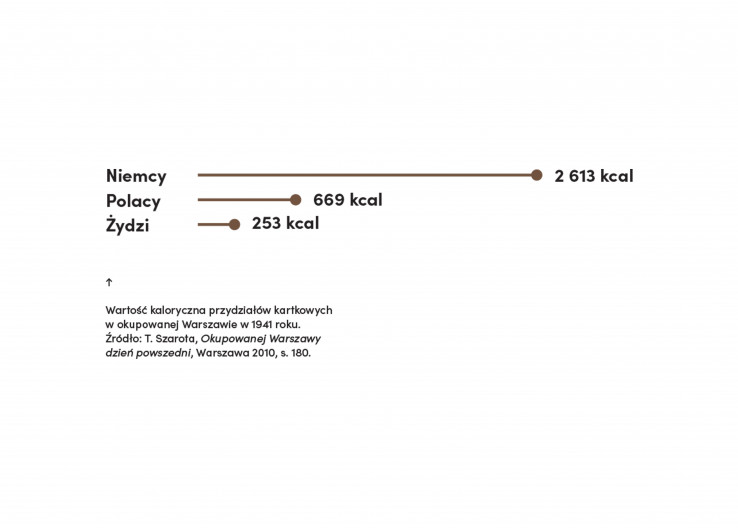 The discriminative nature of the food rations shows the racist attitudes of the Germans towards the so-called “non-Aryan” population of occupied Poland. For Poles, these amounts were only enough to cover 30% of their necessary daily food intake, for Jews, this barely amounted to 10%.
