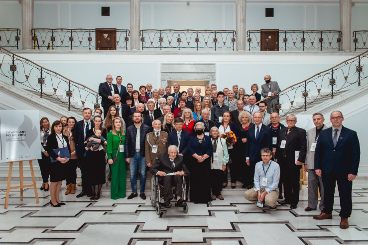 One of the goals of the “Called by Name” project is to draw attention to the family members of the victims who bore and often continue to bear the consequences of the heroic choice made by their parents, grandparents, and siblings. Many of them were orphaned; some were eye witnesses of the tragic deaths of their loved ones. Representing all generations (Eugeniusz Sowa, the oldest participant, is 92 years old, while the youngest, Jaś, is only 3 months), the families of the “Called by Name” met with politicians associated with the Parliamentary Group for the Called by Name in the Column Hall of the Sejm. A letter to the participants of the meeting was sent by the Speaker of the Sejm, Elżbieta Witek, who assumed honorary patronage over the event. The Speaker wrote: