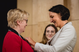 Towards the end of the first day, Prof. Magdalena Gawin, Director of the Pilecki Institute, handed out commemorative pins.