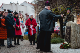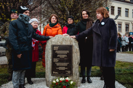 The commemoration of Michał Stasiuk began with a mass at the St. Adalbert’s and St. Stanislaus’ Church. Due to low temperatures, the official ceremony was held at the city hall, and then the commemorative plaque was unveiled in the “Silent Unseen” Square, followed by wreath laying.