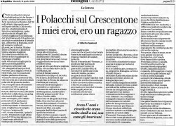 Pan Spadoni miał 17 lat, kiedy wyzwolono Bolonię. W tekście opublikowanym na łamach włoskiego dziennika „la Reppublica” żołnierzy 9. Batalionu Strzelców Karpackich wspomina z wielką sympatią: „Polacy byli żołnierzami wyjątkowymi; swobodni w obejściu, wyróżniający się spośród wszystkich innych, głównie ze względu na maniery i nieco ceremonialne podejście do >>wyzwolonych<<. Wieśniaczki były zaskoczone pocałunkami polskich żołnierzy! (…) Nie byli tak przystojni, ale i leniwi jak Amerykanie, lecz bardzo podobni do nas, do mieszkańców naszego kraju, o tym samym wzroście, budowie ciała, takiej samej łatwości w nawiązywaniu znajomości”. Trzeba dodać, że niektóre z tych damsko-męskich zakończyły się (a może raczej zaczęły) na ślubnym kobiercu.
