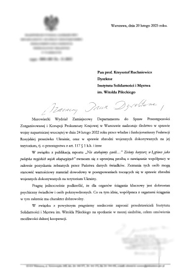 Wczoraj opublikowaliśmy raport o rosyjskim ataku na cywilów we wsi Łypiwka w Ukrainie. Dzisiaj otrzymaliśmy pismo z Prokuratury Krajowej!