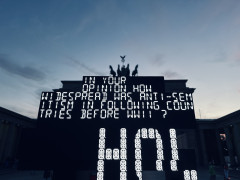 W 85. rocznicę wybuchu II Wojny Światowej Instytut Pileckiego w Berlinie zaprezentował nowoczesną instalację artystyczną "Erozja" słynnego kolektywu panGenerator na tle Bramy Brandenburskiej.