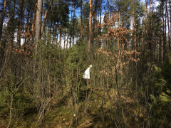 Niejednokrotnie po miejscu, przy którym doszło zbrodni, pozostało niewiele: kamienie, które pozostały po zburzonym dawno temu budynku, porasta las. Na poniższych zdjęciach można zobaczyć Józefa Boguckiego i naszych pracowników podczas poszukiwań fundamentów domu Budziszewskich (Wacław Budziszewski został upamiętniony 22 września 2019 roku) w Żebrach-Laskowcu. Podczas pierwszego spotkania nie udało się natrafić na żaden ślad, ale pan Józef szukał dalej na własną rękę. Kiedy udało mu się zlokalizować miejsce, przywiązał reklamówkę do jednego z drzew, aby podczas następnej wizyty pracownicy instytutu trafili już we właściwe miejsce.