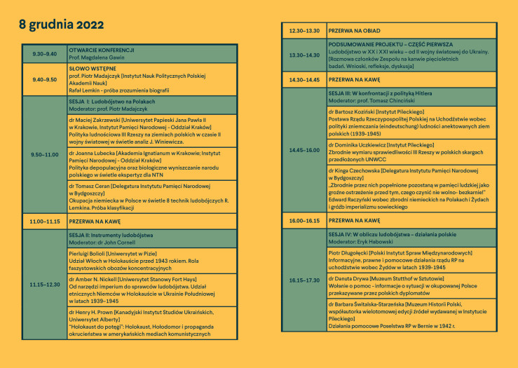 8 i 9 grudnia w warszawskim Pałacu Staszica odbyła się Międzynarodowa Konferencja Naukowa podsumowująca projekt „Wkład polskiej myśli prawno-naukowej w kształtowanie pojęcia zbrodni genocydu. Rafał Lemkin i Konwencja w sprawie zapobiegania i karania zbrodni ludobójstwa z 1948 r. a polskie doświadczenie okupacji przez narodowosocjalistyczne Niemcy”. Wydarzenie zorganizował Instytut Pileckiego i zaprosił do współpracy uczonych z uniwersytetów m.in. Polski, Kanady, Włoch, Australii i Ukrainy.