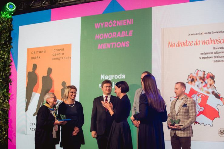 "Uważamy, że naszym obowiązkiem jest pomagać w rozmaity sposób Ukrainie, która walczy o swoją wolność. Chcielibyśmy pomóc także represjonowanym członkom opozycji na Białorusi. Wojna w Europie, cierpienie ludności cywilnej i ogromny wysiłek militarny żołnierzy ukraińskich powinny zmienić postrzeganie Europy Środkowo-Wschodniej przez Zachód. Żeby zwiększyć zainteresowanie tym obszarem Europy w kraju i zagranicą, ufundowaliśmy nagrodę specjalną , która jest poświęcona Ukrainie i Białorusi" - powiedziała podczas gali dyrektor Instytutu Pileckiego prof. Magdalena Gawin.