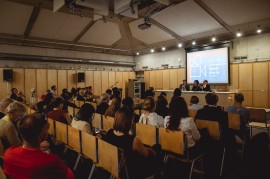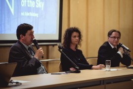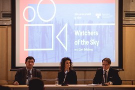 Projekcję poprzedziła krótka rozmowa z prof. Markiem Kornatem – historykiem, kierownikiem Zakładu Dziejów Dyplomacji i Systemów Totalitarnych w Instytucie Historii PAN oraz dr Agnieszką Bieńczyk-Missalą – politolog, wykładowcą Instytutu Stosunków Międzynarodowych UW, autorką książek, m.in.: „Międzynarodowa ochrona praw człowieka” i „Civilians in contemporary armed conflicts”.