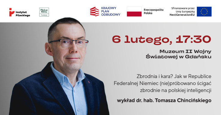 - 17:30 – 18:30 | Wykład dr. hab. Tomasza Chincińskiego (prof. Instytutu Pileckiego) i dyskusja z udziałem publiczności: Zbrodnia i kara? Jak w Republice Federalnej Niemiec (nie)próbowano ścigać zbrodnie na polskiej inteligencji