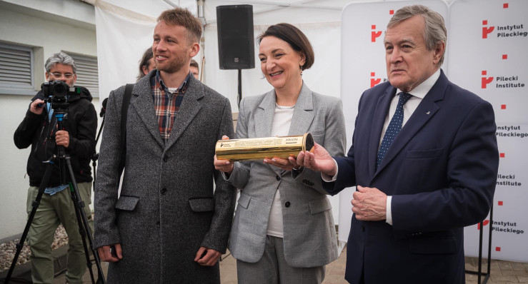 Dyrektor Instytutu Pileckiego odczytała list od premiera Mateusza Morawieckiego i wicepremiera Glińskiego, który umieszczono w kapsule czasu. "W tym uroczystym dniu, wmurowania kamienia węgielnego pod siedzibę Instytutu Pileckiego, wspominamy wartości, którym służył patron tej instytucji - Witold Pilecki, żołnierz państwa podziemnego, ochotnik do Auschwitz, autor raportów o potwornościach nazistowskiej machiny zagłady, następnie powstaniec warszawski, więzień i ofiara komunistycznego aparatu represji. Dokonał wyboru, nie poprzestał na świadectwie, ofiarnie i odważnie walczył z sowieckim bolszewizmem, niemieckim nazizmem i zbrodniczym komunizmem" - głosi list.