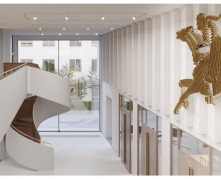 „Chcieliśmy, żeby ten budynek miał charakter państwowo-twórczy, żeby w swojej estetyce i języku architektonicznym odnosi się do XX-lecia międzywojennego” – mówi Tomasz Trzupek, architekt i malarz, kierownik Pracowni Rysunku, Malarstwa i Rzeźby na Wydziale Architektury Politechniki Warszawskiej. „Stąd też zastosowane wewnątrz metaloplastyki i meblorzeźby, które mówią o idei państwa polskiego”.