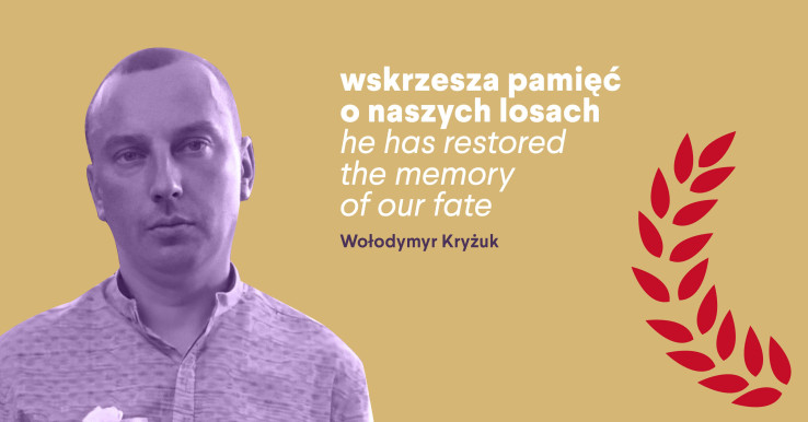 „Do dziś jest ukraińskim opiekunem miejsc polskich pamięci” – Wołodymyr Kryżuk, nauczyciel, wychowawca, aktywista, wolontariusz i samorządowiec od początku lat dwutysięcznych pomagał Polakom, którzy przyjeżdżali porządkować mogiły ofiar mordu dokonanego 30 sierpnia 1943 roku przez członków OUN-UPA we wsiach Ostrówki i Wola Ostrowiecka. Jako przewodniczący rady wiejskiej w Równem angażował się w organizowane przez Instytut Pamięci Narodowej ekshumacje ofiar rzezi wołyńskiej, w wyniku których odnaleziono szczątki około 300 Polaków. Jest strażnikiem pamięci o dawnych mieszkańcach Wołynia. Opiekuje się pomnikiem poświęconym zamordowanym Polakom i cmentarzem w Ostrówkach. Po rosyjskiej agresji na Ukrainę w 2022 roku włączył się w działania lokalnej organizacji samoobrony.