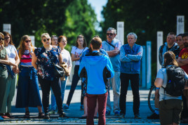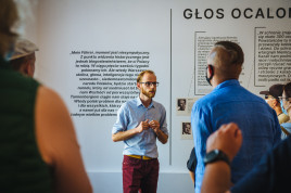 Spacer wraz z oprowadzaniem kuratorskim po ekspozycji „Wola 1944: Wymazywanie. Zdjęcia ze śledztwa w sprawie Heinza Reinefartha” poprowadzili Jakub Madejski, przewodnik po Warszawie, a także Natalia Radulska i Bartosz Gralicki z Instytutu Pileckiego – współautorzy wystawy.
