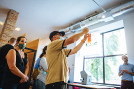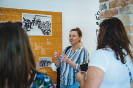 Ostatnim punktem spaceru było oprowadzanie kuratorskie po wystawie poświęconej nieudanym próbom wymierzenia sprawiedliwości głównemu sprawcy masakry, „Wola 1944: Wymazywanie. Zdjęcia ze śledztwa w sprawie Heinza Reinefartha”, przygotowanej przez Instytut Pileckiego i Wolskie Centrum Kultury (dowiedz się więcej). Ekspozycja opiera się na zbiorze ponad stu fotografii, które zostały zgromadzone w aktach śledztwa prowadzonego w latach 60. w sprawie sądowej przeciw Reinefarthowi: była to ostatnia próba osądzenia głównego sprawcy tej zbrodni, niestety zakończona niepowodzeniem. Wystawa prezentowana jest w miejscu wyjątkowym – w Kolonii Wawelberga, której wielu mieszkańców zginęło w masowych egzekucjach 5 sierpnia 1944 r.