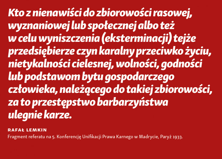 Koncepcja ludobójstwa autorstwa Lemkina rewolucjonizuje nie tylko prawo międzynarodowe. Nadając nazwę ekstremalnemu doświadczeniu, pomaga je zrozumieć i przezwyciężyć. Los wspólnot, które padły ofiarą ludobójstwa, zależy przecież przede wszystkim od nich samych. Czy zdołają zbudować pomyślną przyszłość, zachowując w pamięci tragiczne przeżycia i czerpiąc z nich siłę?