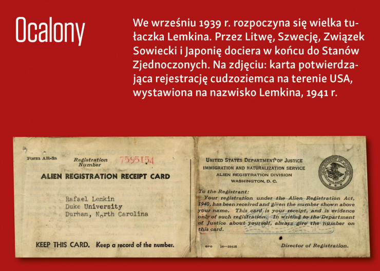 Dramat II Rzeczpospolitej jest także osobistą tragedią Lemkina, który traci w Zagładzie niemal całą rodzinę. Jemu samemu udaje się wydostać z kraju. Na emigracji w Stanach Zjednoczonych tworzy definicję ludobójstwa.