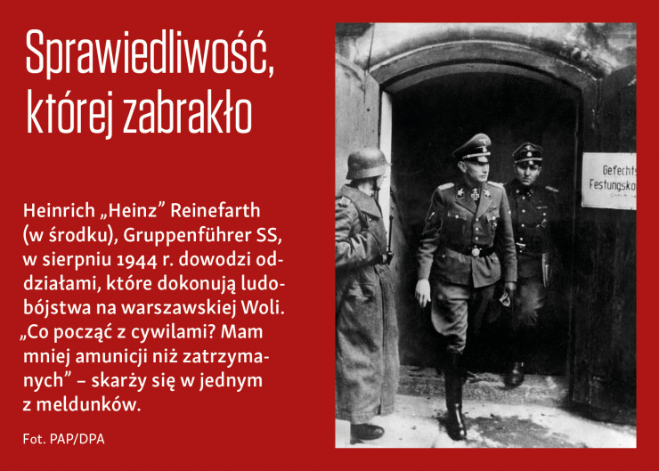 Zwycięstwo koalicji antyhitlerowskiej otwiera drogę do rozliczenia niemieckich zbrodni. W latach 1945-1946 przed Międzynarodowym Trybunałem Wojskowym w Norymberdze stają m.in.: Hermann Göring, Alfred Rosenberg i Martin Bormann. Zapada dziewiętnaście wyroków skazujących, w tym dwanaście na karę śmierci. Kolejne procesy odbywają się w amerykańskiej strefie okupacyjnej i w Polsce, gdzie w 1947 r. sądzony jest Rudolf Höß – komendant obozu Auschwitz-Birkenau. Zarazem wielu zbrodniarzy niemieckich unika kary.