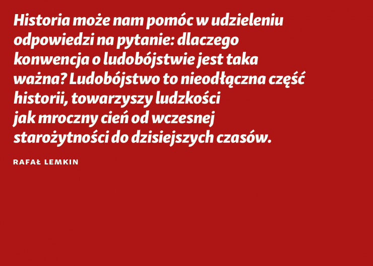 Dzieło Rafała Lemkina wyrasta z doświadczenia II wojny światowej, ale ma zasięg uniwersalny. W XX wieku służy do opisu wydarzeń na różnych kontynentach. Masowe zbrodnie wymierzone w istnienie całych grup narodowych i religijnych dowodzą dziś, że ludobójstwo to wciąż aktualne wyzwanie.