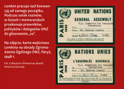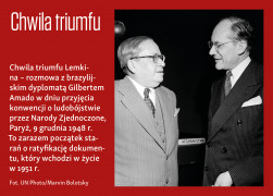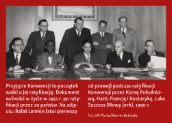 Obecny na sali obrad w paryskim Palais de Chaillot Rafał Lemkin przyjmuje gratulacje, a dokument wprost nazywany jest „Konwencją Lemkina”. Polski prawnik żydowskiego pochodzenia, który podczas Holokaustu stracił niemal całą swoją rodzinę, stworzył pojęcie i definicję ludobójstwa oraz udokumentował jego przykłady. Przygotował także projekt Konwencji i rozpoczął kampanię na rzecz jej przyjęcia. Dziś dokument pozostaje głównym narzędziem obrony wspólnoty międzynarodowej przed ludobójstwem, nazywanym powszechnie „zbrodnią nad zbrodniami”.