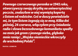 Dramat II Rzeczpospolitej jest także osobistą tragedią Lemkina, który traci w Zagładzie niemal całą rodzinę. Jemu samemu udaje się wydostać z kraju. Na emigracji w Stanach Zjednoczonych tworzy definicję ludobójstwa.
