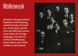 Lemkin graduated from the gymnasium in Wołkowysk and took up law at the Jan Kazimierz University in Lwów – the most important center of jurisprudence and legal thought in the Second Polish Republic. He attended lectures given by eminent Polish lawyers, developing an interest in criminal law, and studied cases of mass killings of national and religious communities.
