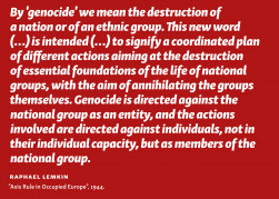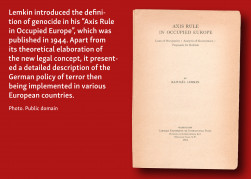 Raphael Lemkin’s work had its roots in the experiences of the Second World War, but it invites universal application, and as such can be used to describe events that unfolded in various parts of the world throughout the 20th century. Even today, the occurrence of mass atrocities endangering the existence of entire national and religious groups testifies to the fact that genocide is an ongoing challenge.