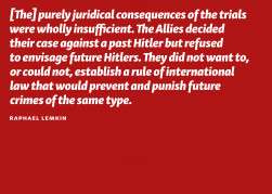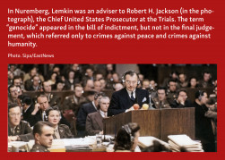 During the Nuremberg Trials, Raphael Lemkin acted as an advisor to the Americans. The term “genocide” did appear in the bill of indictment, but the perpetrators were eventually convicted of other crimes. Lemkin devoted the rest of his life to persuading the world to adopt his concept.