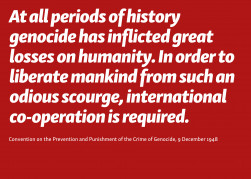 On 9 December 1948, the United Nations unanimously adopted the Convention on the Prevention and Punishment of the Crime of Genocide. All acts committed “with the intent to destroy, in whole or in part, a national, ethnical, racial or religious group” became a crime under international law. This was a natural consequence of the tragic experience of the Second World War: pursuant to the Convention, the perpetrators of genocide would be punished and the crime itself prevented from being repeated.