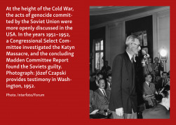 Katyn, a village located near Smolensk, is where the Soviets committed an appalling crime against Polish prisoners of war. On 5 March 1940, the Political Bureau of the All-Russian Communist Party issued an instruction to exterminate more than 25,000 people – “declared and incorrigible enemies of Soviet authority”. In April and May 1940, the NKVD carried out the executions of approximately 22,000 Polish army and police officers, who were at once intellectuals representing a great many professions. The victims were dispatched with a shot to the back of the head, and their bodies were thrown into pits. When the Germans discovered these mass graves in 1943, Soviet propaganda was quick to blame the Nazis for the crime. Such was the official version of events right until the end of Communist Poland in 1989.