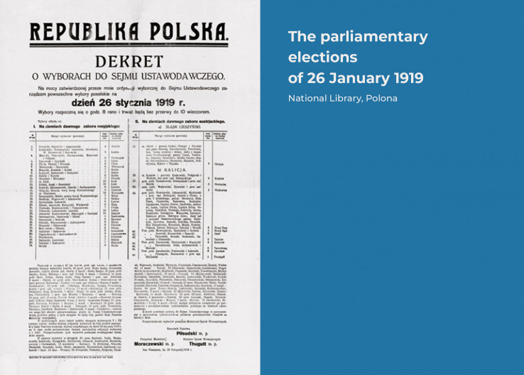 Diplomatic and military efforts made Poland return in 1918 to the political map of the world. The gigantic endeavor of creating the structures of the Polish Republic on the lands recently divided into three partition zones meant, among others, taking many demanding administrative and political actions. This included organizing the first free and democratic elections to the Polish parliament.
