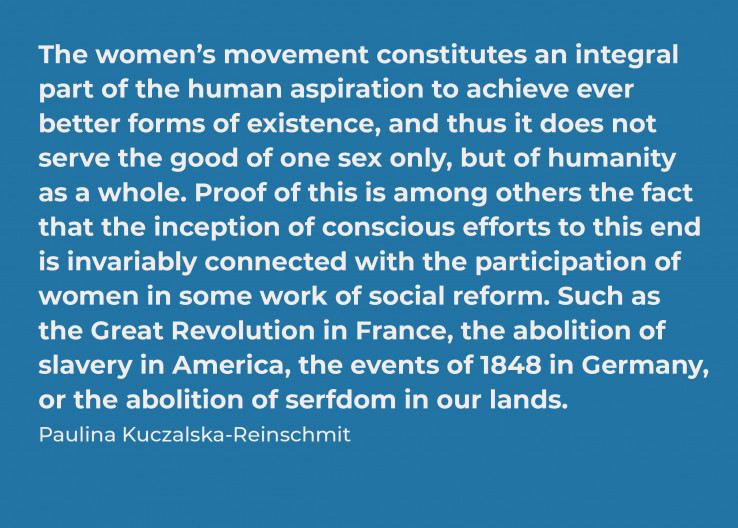 The founder of the Polish feminist movement was Paulina Kuczalska-Reinschmit, the co-creator and editor-in-chief of “Ster” (published in Lwów in the years 1895–1897, and in Warsaw from 1907), the press organ of the Union of Equal Rights for Polish Women.