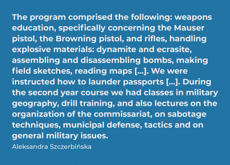 These women took part in terrorist activities targeting the Tsarist administrative structure; during the First World War – wearing male uniforms and under male pseudonyms, like e.g. Wanda Gertz – they fought as soldiers in the Legions. They also worked as intelligence operatives and provided aid as nurses. Frequently, the price they had to pay was high – imprisonment, torture, or even death.