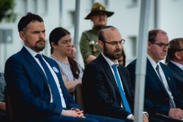 Następnie na terenie przed Szkołą Podstawową im. kpt. W. Raginisa w Grądach-Woniecku odsłonięto tablicę, poświęconą pamięci Piotra Kościeleckiego, a także nieznanych z imienia Żydów, którym udzielał pomocy. Jak podkreśla Wojciech Kozłowski, dyrektor Instytutu Pileckiego: „Bezwzględne realia niemieckiej polityki okupacyjnej w Polsce obliczone były na zniszczenie wszelkich więzi solidarności między Polakami a Żydami, a najdrobniejszy gest współczucia, każdy ludzki odruch karały śmiercią. Historia z Grądów-Woniecka to kolejny przypadek, w którym ratujący i ratowani ponoszą śmierć, a potem są chowani we wspólnej mogile. Dlatego honorując pamięć o Piotrze Kościeleckim, czcimy również pamięć o Żydach (…). To nasze wspólne zadanie, by pamiętać o wszystkich Polakach i Żydach zamordowanych w Polsce w czasie okupacji niemieckiej”. Obecny na uroczystości rabin Oriel Zaretsky odmówił modlitwę za zmarłych.