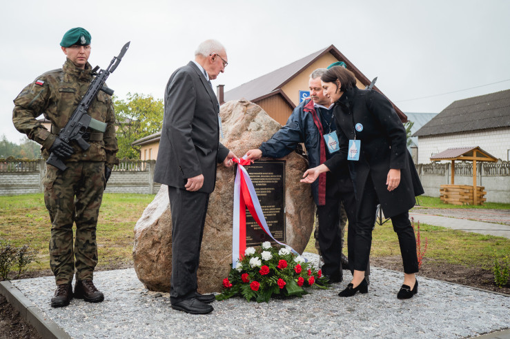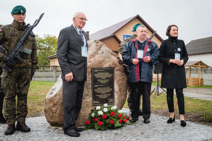 Po mszy zgromadzeni goście przeszli w okolice ronda w Majdanie Nowym, gdzie odbyła się uroczystość odsłonięcia kamienia upamiętniającego.
