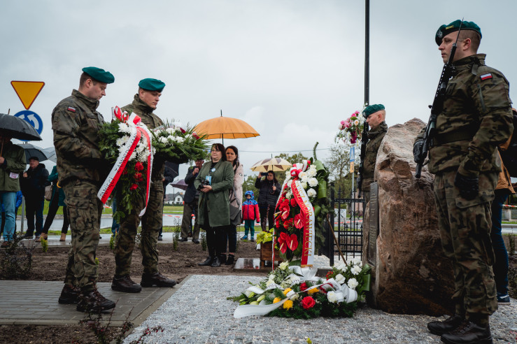 Po odsłonięciu pomnika złożono wieńce, między innymi, w imieniu Pana Mateusza Morawieckiego, Prezesa Rady Ministrów, Pani Poseł na Sejm Rzeczypospolitej Beaty Strzałki oraz Pani Poseł do Parlamentu Europejskiego Beaty Mazurek.